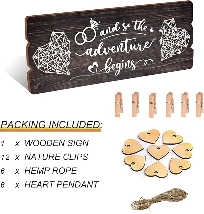 - LARGE AND PERFECT SIZE: Such love story board measures about 15.8x6 inches with 12 wooden clips and 6pcs 6pcs heart shaped twine , improved and much bigger than the similar items found on the market.