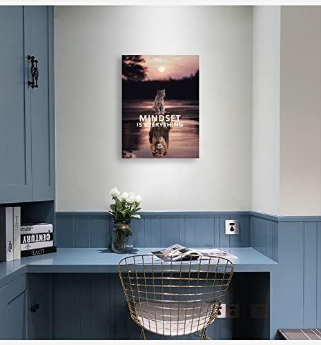 Inspirational Wall Art Mindset is Everything Kitten Lion King Inspiring Painting Printing Artwork Entrepreneur Quote Poster Home Wooden Decoration Bedroom Room Frame Ready to Hang[18" W x 24" H]