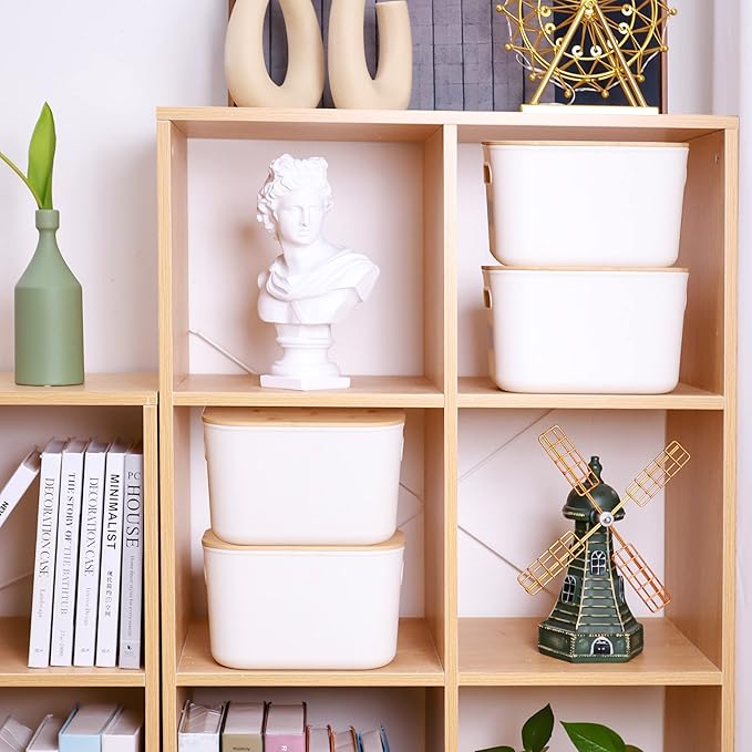 - Thoughtful Size: Package includes 2 plastic storage bins with bamboo lids, single measuring: 10.23"L * 7.08" W * 6.3"H.