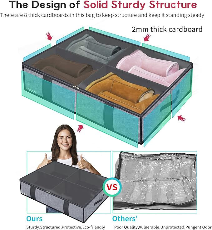 - STURDY & SPACE SAVING - This underbed shoe box made of breathable nonwoven fabric and thick cardboard, it can stand on its own empty. Also can be folded flat when not in use.