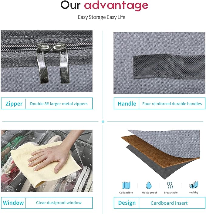 - PORTABLE WITH 4 HANDLES - 4 reinforced handles on front and sides allow you to pull them out from under the bed in any direction without worry.And feature good stitching.