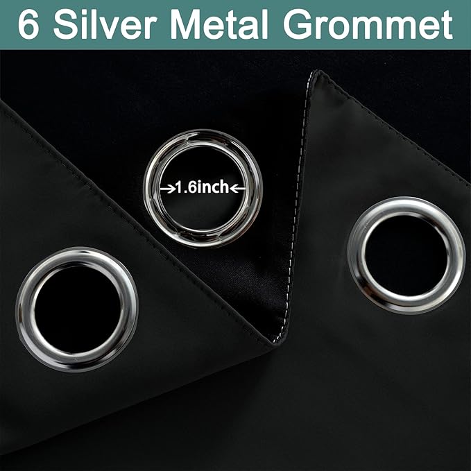 - PACKAGE MADE:2 panels per package. Each Lined Curtain measures 42" wide x 84" long. 6 Silvery Grommets per panel. This silvery grommet (1.6 inch inner diameter) fits many rods. Easy to hang and smooth to slide. The simple design gives people a sense of ease.