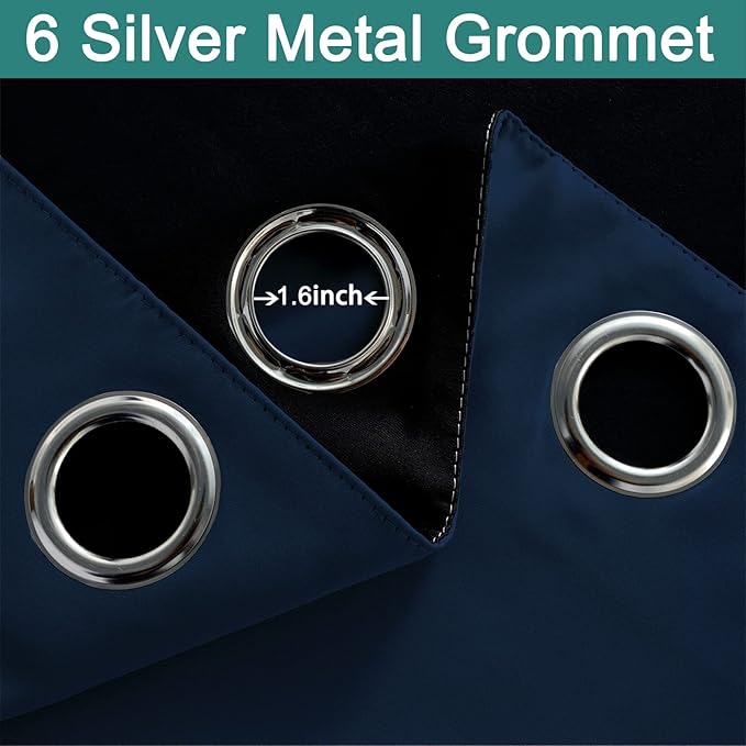 - PACKAGE MADE:2 panels per package. Each Lined Curtain measures 42" wide x 84" long. 6 Silvery Grommets per panel. This silvery grommet (1.6 inch inner diameter) fits many rods. Easy to hang and smooth to slide. The simple design gives people a sense of ease.