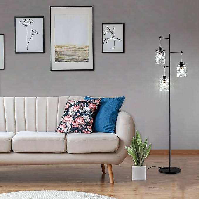beaysyty Art Decor Crystal Black Floor Lamp 3-Light Contemporary Crystal Lampshade for Living Room,Bedroom,Office