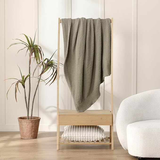 JOOJA Taupe Knit Throw Blanket Knitted Boucle Blankets Decorative Soft Fuzzy Throw Bed Blanket for Women Couch 50x60 Inches Taupe