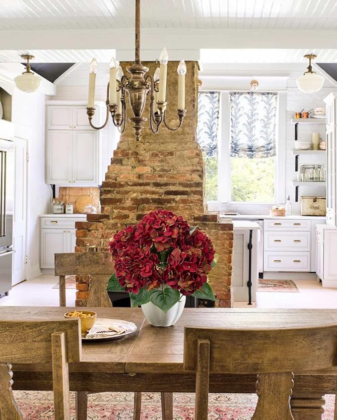 Red Hydrangea Artificial Flowers Large Artificial Hydrangeas Silk Dark Red Fall Flowers Faux Fall Burgundy Flower for Home Decor Indoor Wedding Bouquets Kitchen Centerpiece Table Decorations