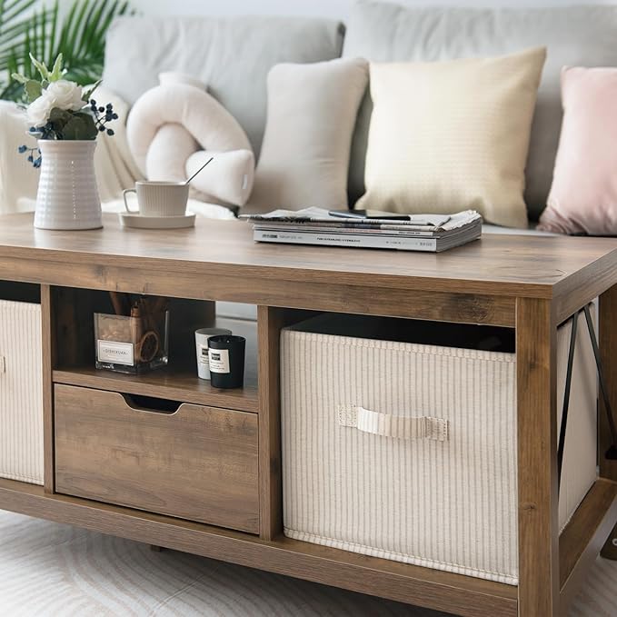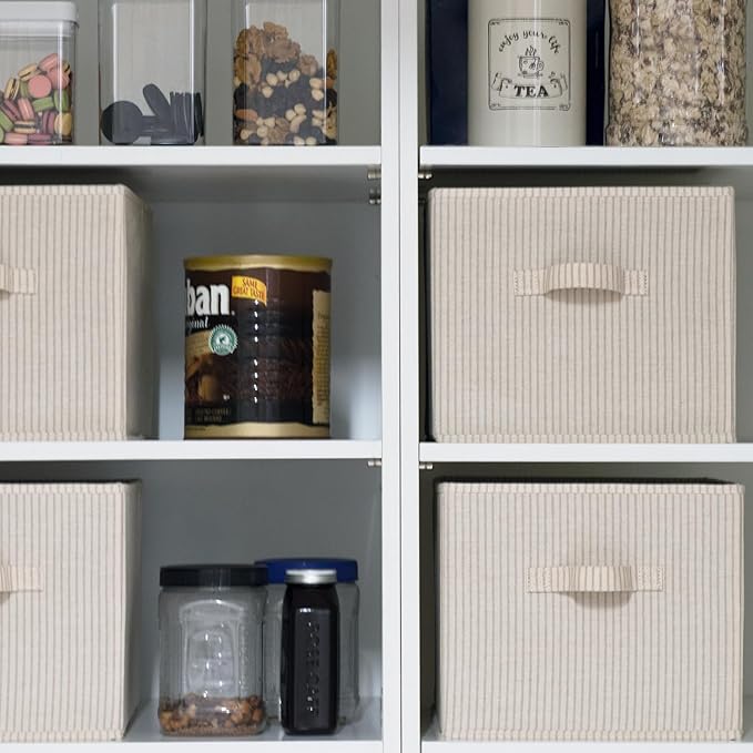 StorageWorks Storage Baskets for Shelves, Foldable Fabric Closet Storage Bins with Handles, Fabric Storage Bins Clothes Organizer, Beige Stripes, 3-Pack, Extra Large