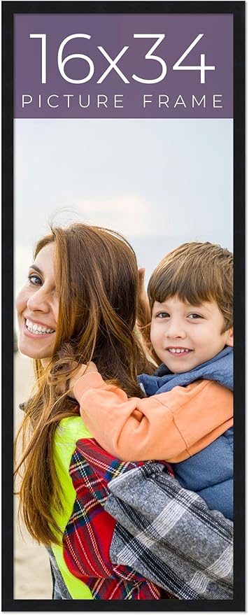 - Handcrafted Black Wood Picture Frame for Family Photos, Art Prints, Canvases, Documents, Kids Drawings, Diplomas, Certificates, and More Measuring 16x34 Inches