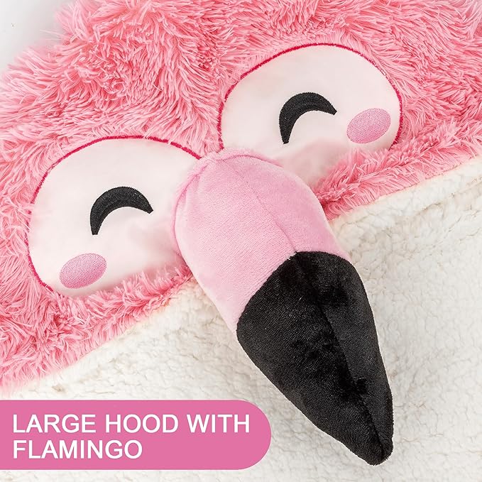 Flamingo Wearable Hooded Blanket for Adults - Fluffy Super Soft Shaggy Faux Fur, Fuzzy Warm Cozy Plush Furry Fleece & Sherpa Hoodie Throw Cloak Wrap - Flamingo Gifts for Women Adults and Kids