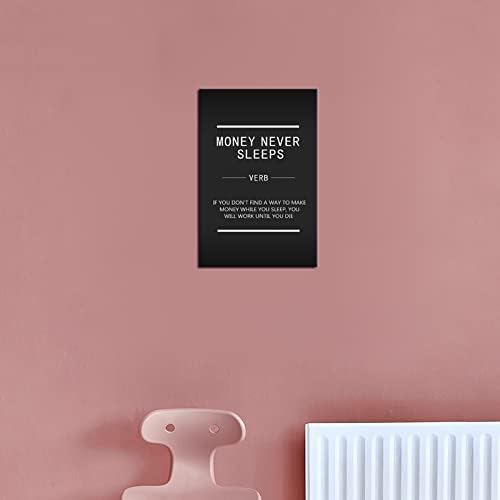 Money Never Sleeps Motivational Canvas Wall Art Inspirational Wall Street Entrepreneur Quotes Painting Poster Office Home Decor Print Artwork Living Room Bedroom Frame Ready to Hang[12''W X 18''H]