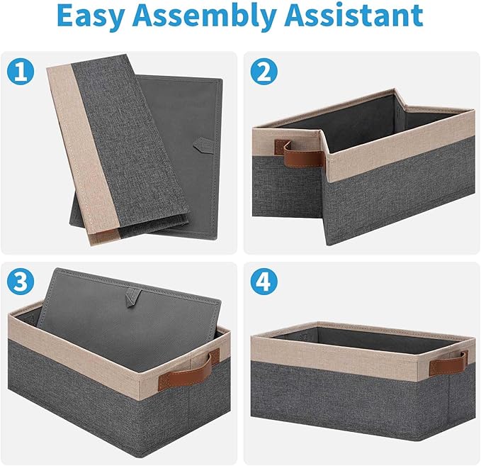 - 👍【QUALITY MATERIAL】Storage baskets for shelves are made of high-quality cationic fabric and polyester cotton fabric, and the inner layer is made of non-woven fabric, which is odorless, long-lasting and strong. Classic faux leather handles that adds a comfortable touch and provides a strong and comfort grip to pull and move. Fabric storage bin is easy to clean, just wipe with a damp sponge or cloth