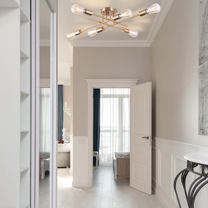 - ๐กใ6-light Sputnik Chandeliers Designใ Semi flush mount ceiling light has elegant and Industrial look, creating a comfortable and modern ambiance to your house.