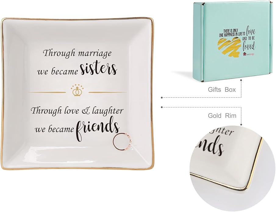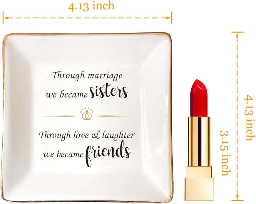 - Great Gifts for Sister In Law: Great decorative jewelry dish gifts for Sister In Law.Birthday gifts for Sister In Law,Valentine's day gifts,Wedding Gifts,Bride Gifts,Thanksgiving day gifts,New Year and Christmas for Sister In Law. It’s a meaningful present for Sister In Law in all gifts occasions.