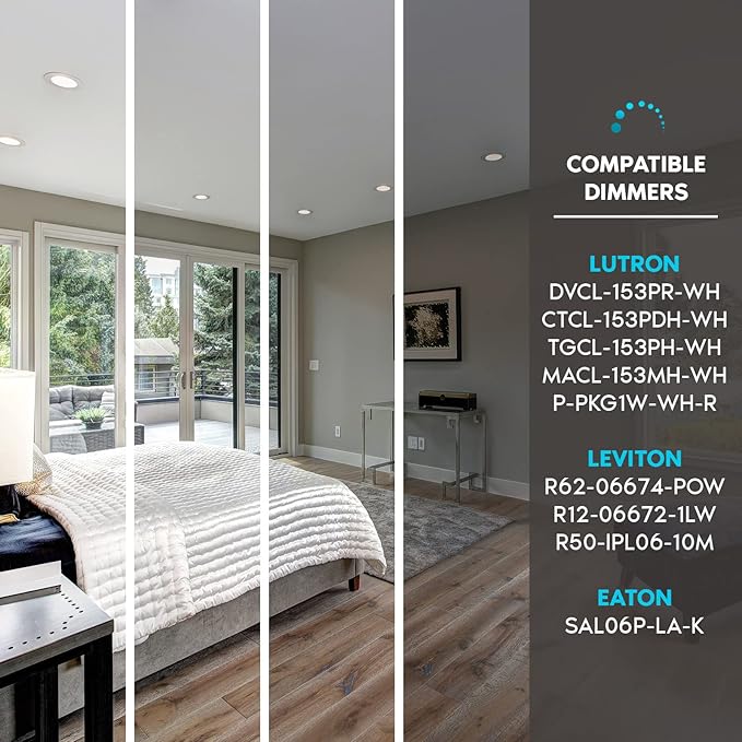 - DIMMABLE - Control the brightness of your 6in LED retrofit kit with it's smooth dimming feature that can be reduced from 100% to 10% lighting output. Be in control of your recess lights that will dim down to your preferred setting without flickering or issues, so you can enjoy a pleasant atmosphere every time. With a wet location and IC insulation safe rating, these LED recessed lights are ideal for new and old construction, remodel, soffit, eaves, shower, and any indoor and outdoor location.