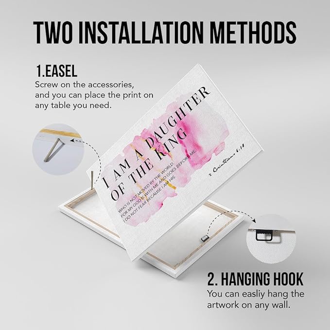 Daughter Gift From Dad Mom Bible Verses Canvas Wall Art I Am the Daughter of a King Prints Framed Watercolor Christian Paintings Artwork Ready to Hang Home Girl Nursery Decor 15x11.5 Inches