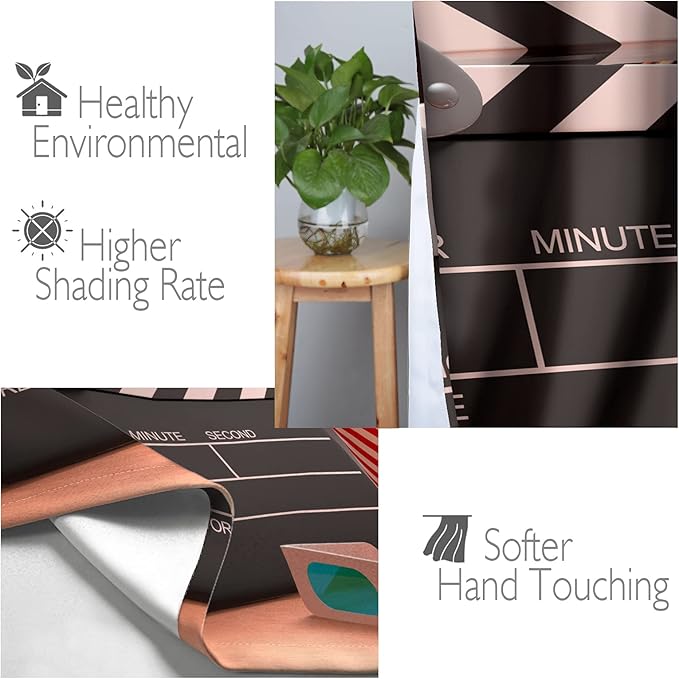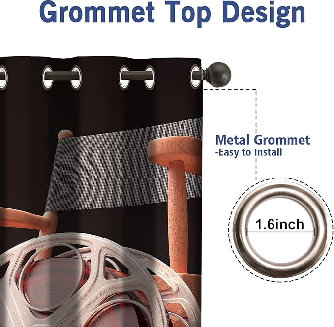 Jekeno Movie Theater Blackout Curtains Movie Theater Decor for Bedroom Living Room Object of Cinema Film Reel Motion Picture Red Black Print Grommet Window Drapes 2 Panel Set, 52"x63"