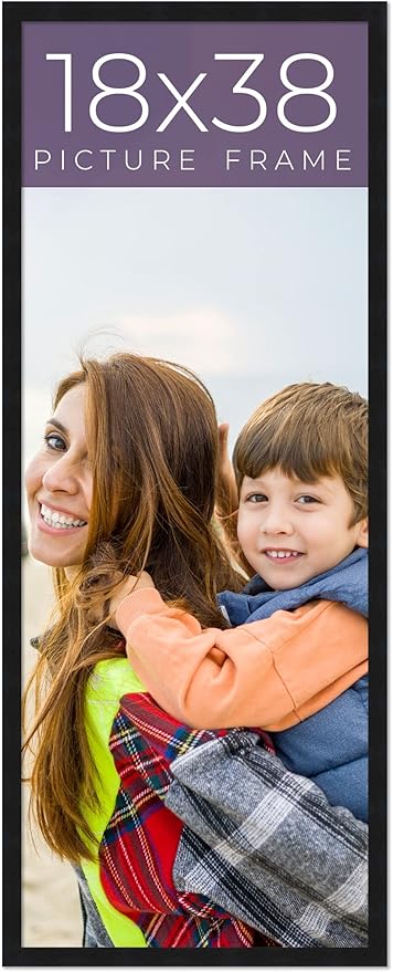 - Handcrafted Black Wood Picture Frame for Family Photos, Art Prints, Canvases, Documents, Kids Drawings, Diplomas, Certificates, and More Measuring 18x38 Inches