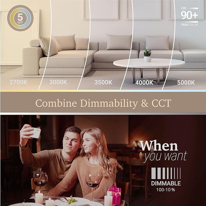 - 5 Color Changing Options – Upgrade to our 5CCT selectable 4 inch square LED recessed lighting. Enjoy 5-in-1 color-changing temperatures, easily set your LED retrofit for can lights to Soft White 2700K, Warm White 3000K, Neutral White 3500K, Cool White 4000K, or Daylight 5000K.