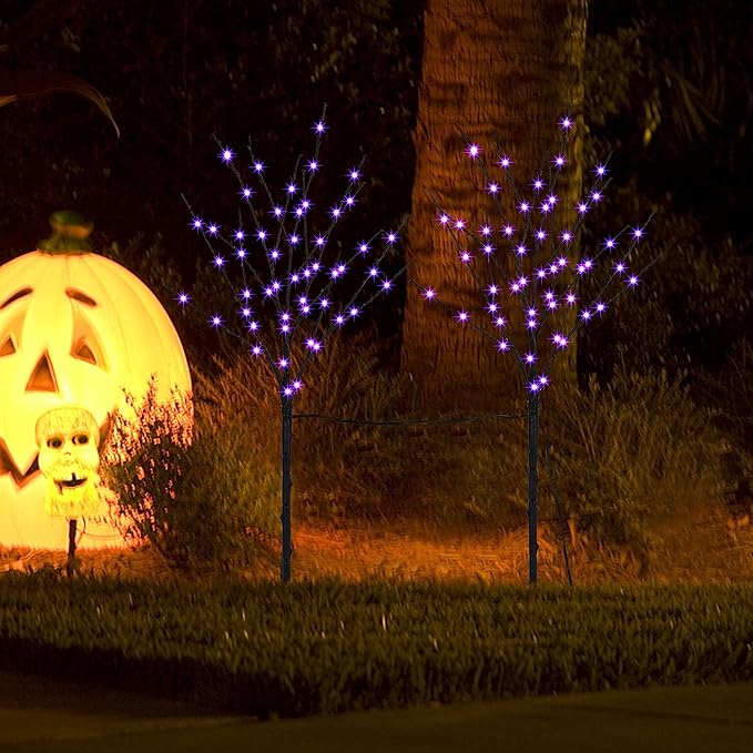 - Halloween Light Up Black Tree Branches: Decorate your home with our 2 pack 30 inch Halloween lighted black artificial spooky tree branches with 100LED (50LED each branch) purple copper lights in the coming up Halloween. This artificial branches glowing lights which is very vivid to emit something lovely in the horror, create a special terror atmosphere