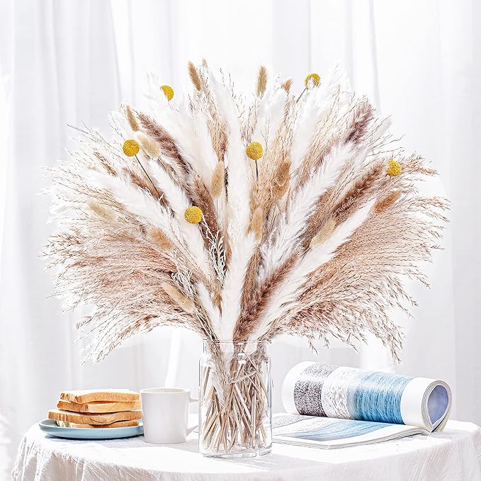 - 【NATURAL DRIED FLOWERS】 Get ready to make any room stand out with our eye-catching pampas grass! Whether it's a home, office, or wedding, our pampas grass will easily complement boho, farmhouse, and modern decor!