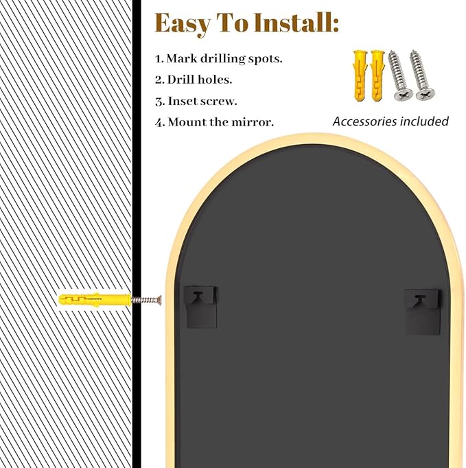 - [Flexible way to use] Vanity mirror can be easily hang on the wall by attached mounting hardware,such screws and dry anchor,aslo you can lean the mirror on the table or any where you want. arch shape offer stable status