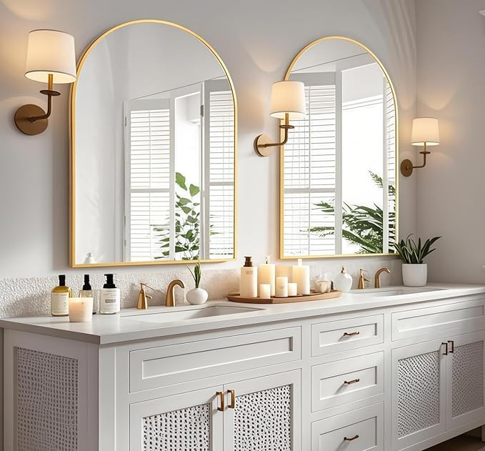 - [Functional and decorative idea] Two classic colors of this arched mirror-black mirror and gold mirror,classic clolor make it easy to fit your home interior and daliy use, Decorative ideas as vanity mirror, bathroom mirror, floor mirror, living room mirror, bedroom mirror