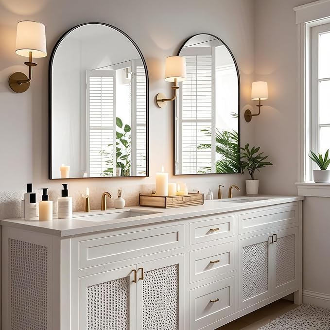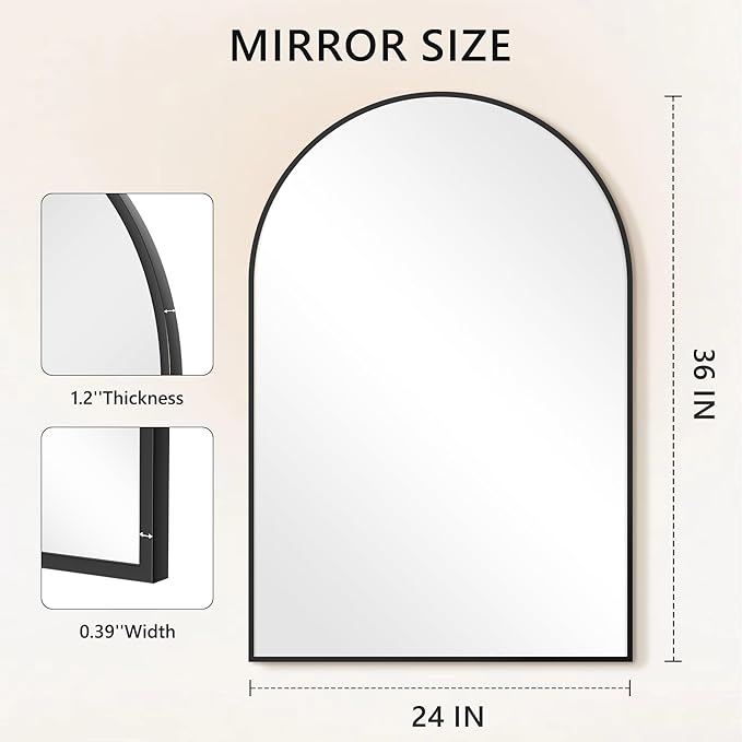- [Arched top mirror] Arched wall-mounted mirror combine the retangle mirror body and arched top frame,this new decorative mirror makes a great way to add vertical space and draws your eyes, perfect for opening the bathroom/powder room up and allows light to flow through the space