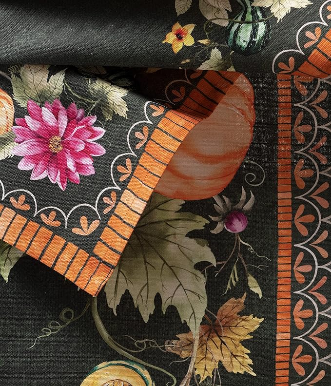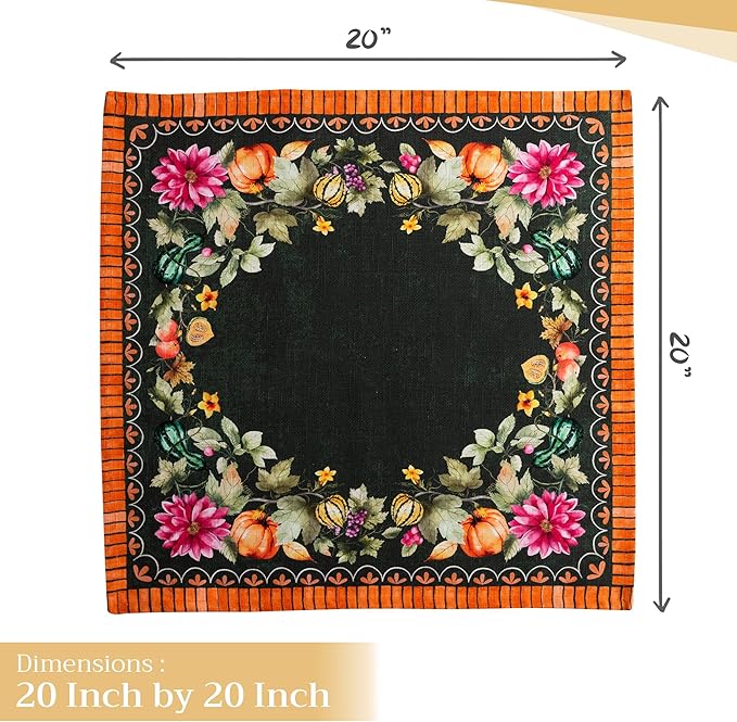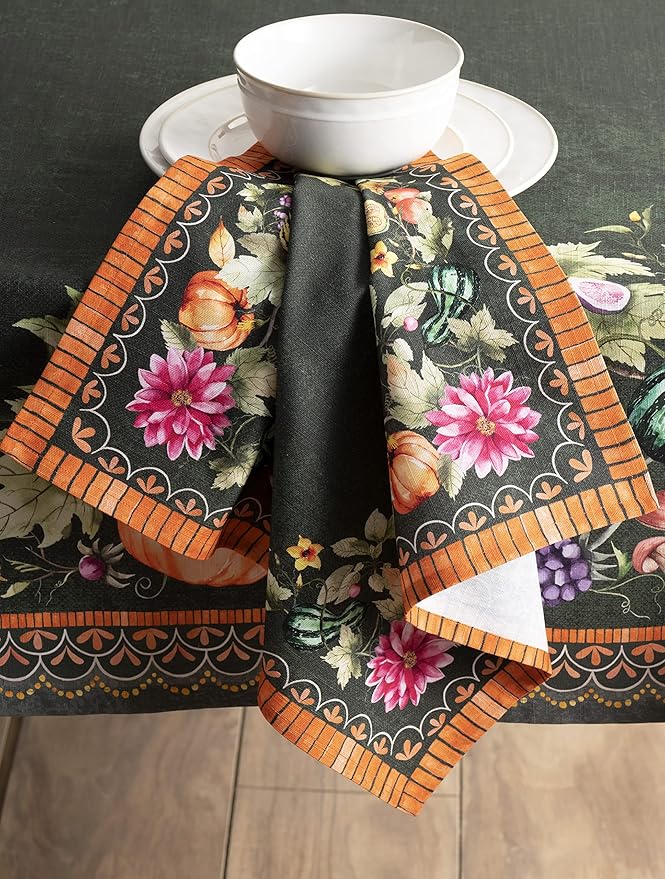 Maison d' Hermine Cloth Napkins Set of 4 100% Cotton Everyday Reusable Square Napkins Cloth Washable, Dinner, Party, Wedding, Restaurant (Pumpkin Garden - Dark Green, 20" x 20")