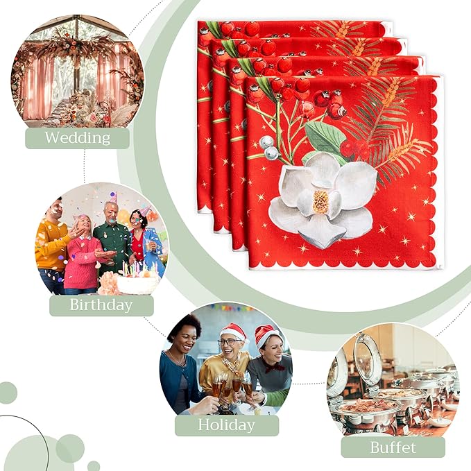Maison d' Hermine Cloth Napkins Set of 4 100% Cotton Everyday Reusable Square Napkins Cloth Washable, Dinner, Party, Wedding, Restaurant (Noel, 20" x 20")