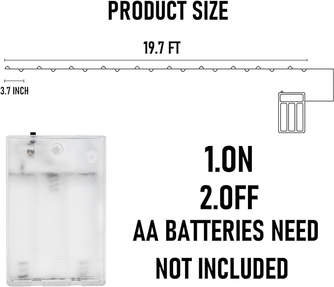 - Size: Dazzle Bright fairy lights come with 60 LED bulbs for a bright and charming glow.