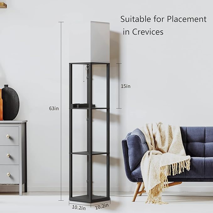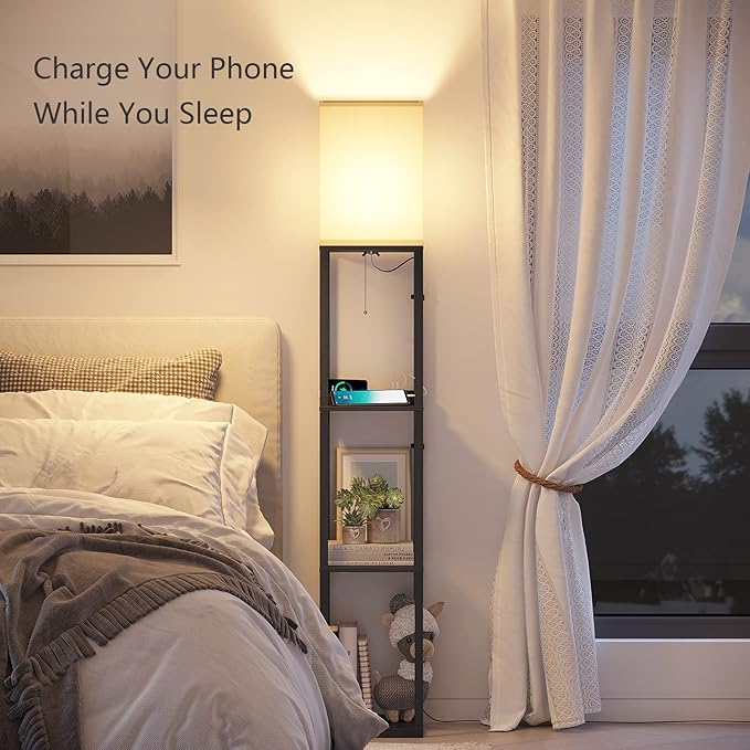 - 【Charge anytime, anywhere and enjoy convenient life】Our lamp with shelves is equipped with 2 USB charging ports and a 2-hole socket, which can be used to charge your mobile phone and IPad . If you place the corner floor lamp by the bed, you can directly charge your mobile phone at night when sleeping. You don't need to get up to find a place to charge, allowing you to fully enjoy the convenience of life.