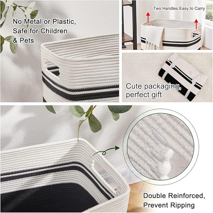 - Double reinforced Handles:We use the highest grade cotton rope as raw material and all the stitches are distribution and fine,which makes the baskets better wear resistance and durability to be used for many years.In addition,each large basket features thick,double stitching around the handles to prevent ripping and keep its shape,never fall off