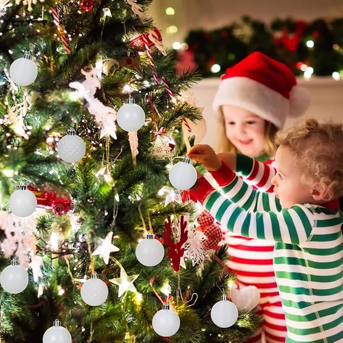 - 【Package and Size】These Christmas ornaments balls are 2"/5cm. Pack of 30 balls. Perfect fit for decorating any normal size Christmas trees. Christmas ornaments set with light weight won't weigh down the Christmas tree branches