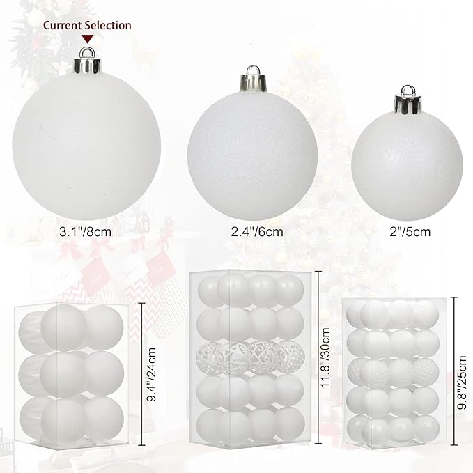 12PCS 3.15" Christmas Ball Ornaments Shatterproof White Christmas Tree Decorations Xmas Tree Balls Halloween Ornaments Décor