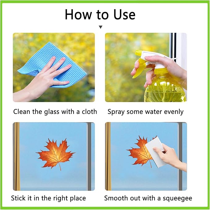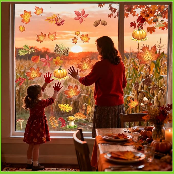 - Handy fall decor for room: fall window decorations can be used without glue. spray the area to be posted with water before use, then apply the thanksgiving window clings finally dry and wipe it flat without leaving any marks.