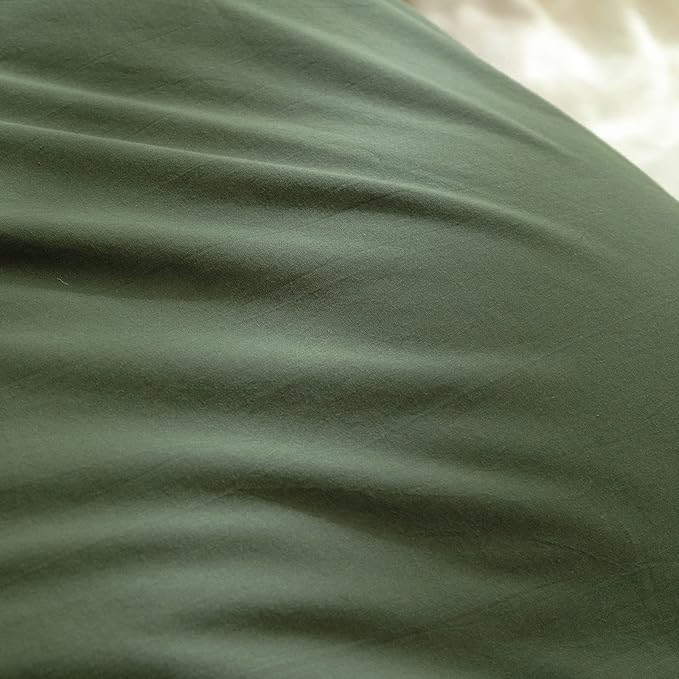 BESTOUCH Duvet Cover Set 100% Washed Cotton Linen Feel Super Soft Comfortable Chic Lightweight 3 PCs Home Bedding Set Solid Olive Green Full/Double