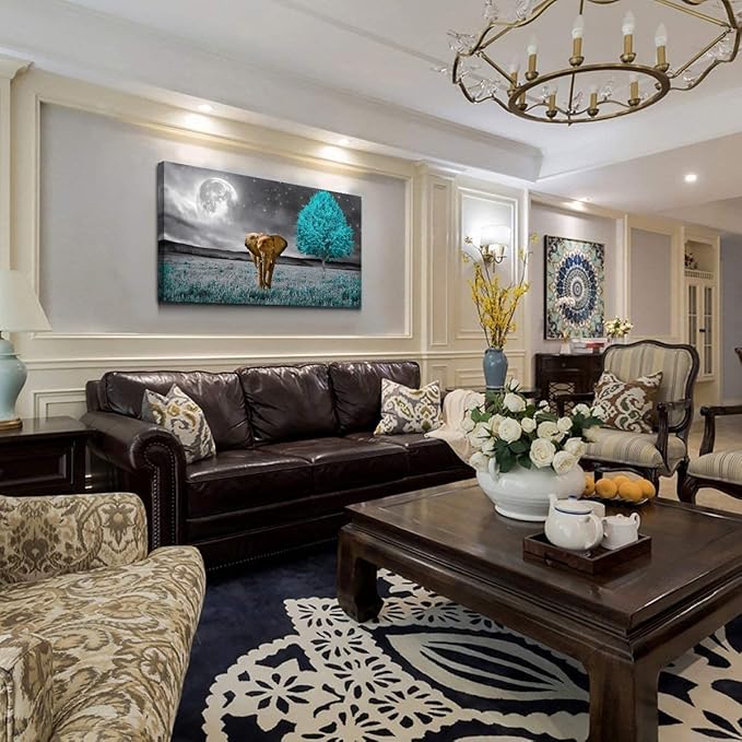 - 5.【Unique Elephant Moon Tree Wall Art Painting Design for Wall Decoration 】-Exclusive designs of artwork .This living room wall decor Makes An Eye-catching accent for your home,dorm or bathroom and living room.Make your home a chic and cozy place with unique beach wall decor.