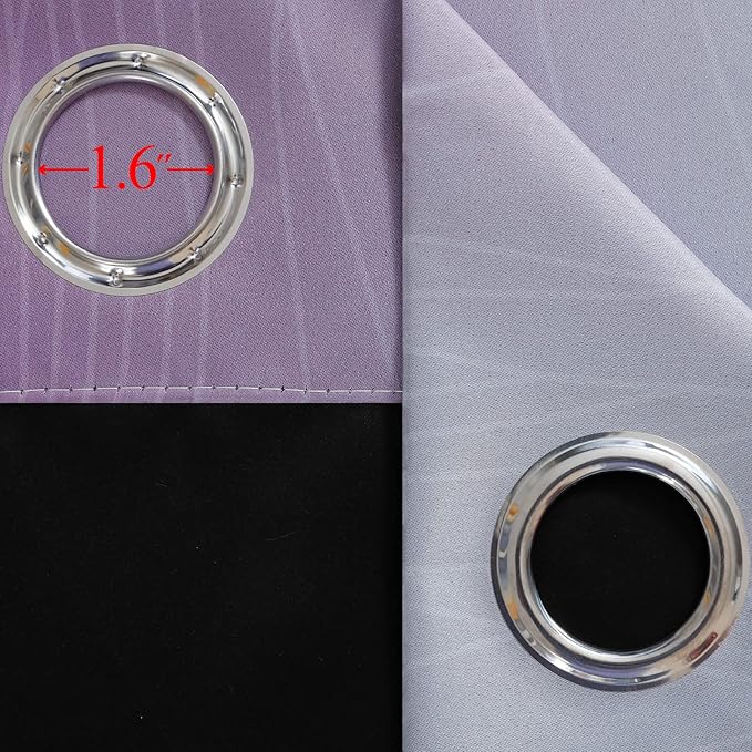 - PACKAGE INCLUDES: 2 panels per package. Each package includes two ombre blackout curtain panels of 52"W x 72"L,one set measures: 104"W x 72"L. Each curtain panel has 8 rustproof silver metal grommets on top. Each grommet inner diameter is 1.6 inch, fits most standard rods in the market. Easy to hang, and slide smoothly. These gradient blackout living room curtains are soft and smooth.