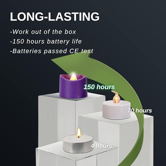 - 200+HOUR: 240mah battery capacity provides 200 hours of illumination, 40X to traditional wax tea lights, ensuring the tea candles work last throughout your events/party/holidays
