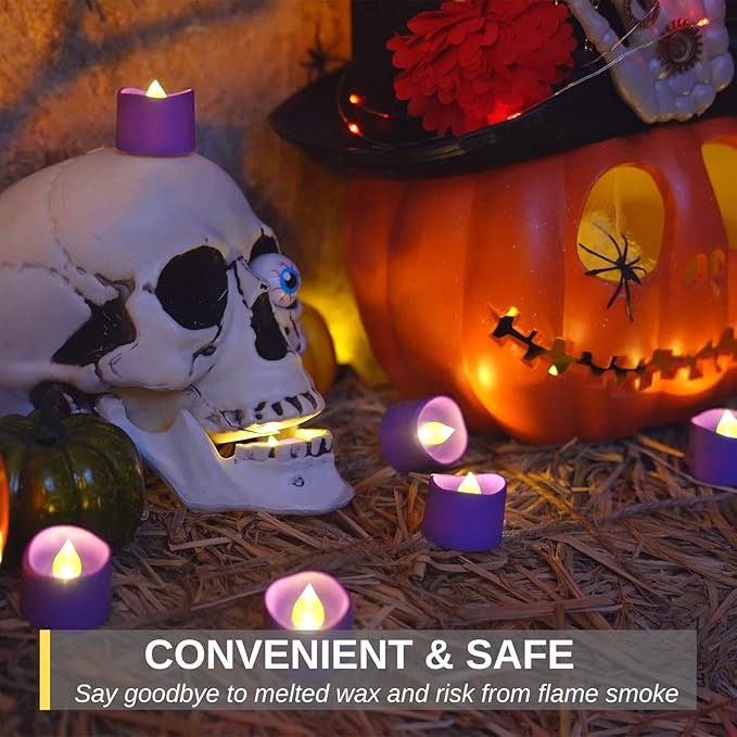 Homemory Purple Tea Lights Candles Battery Operated, 200+Hour Flameless Flickering Fake Electric LED Colored Tealights Candles for Party, Wedding, Halloween, Mardi Gras, Holiday Decor, 24-Pack