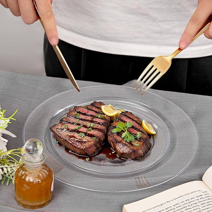 FLOWERCAT 60PCS Clear Plastic Plates - Disposable Clear Plates Heavy Duty for Party/Wedding/New Year - Include 30PCS 10.25inch Dinner Plates and 30PCS 7.5inch Dessert/Salad Plates
