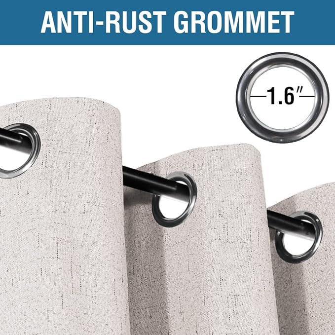 - 100% BLACKOUT: This elegant window panel is passed GLOBAL RECYCLED STANDARD certificate, crafted from rich faux linen textured fabric, inner woven construction features natural blackout effect, definitely block out 100% sun light and prevent harmful UV ray, this opaque piece totally darken your room, reduce the noise and gives you 100% privacy