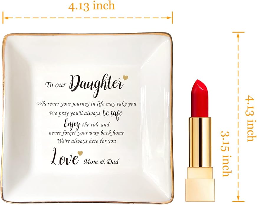 - Ring dish printed with this sentimental quotes would be a great birthday gift for your daughter, college graduation gift for daughter, wedding gift for daughter, Christmas gift, New Year's Eve for daughter from mom and dad