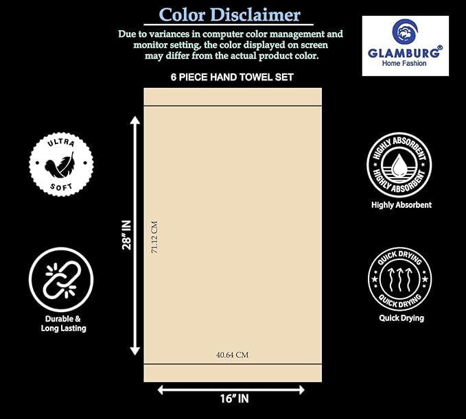 - Each set contains 6 Hand Towels 16x28 - for daily use, dorm room, quick dry & multipurpose usage