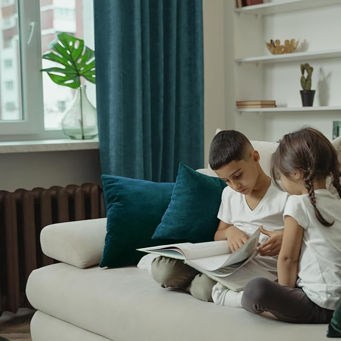 - Package Includes: Set of 2 teal soft velvet curtains; each panel measures 52 Inch wide by 96 Inch long, with 5 back tabs and 3” rod pocket fits most standard rods and makes the maximize coverage of windows.