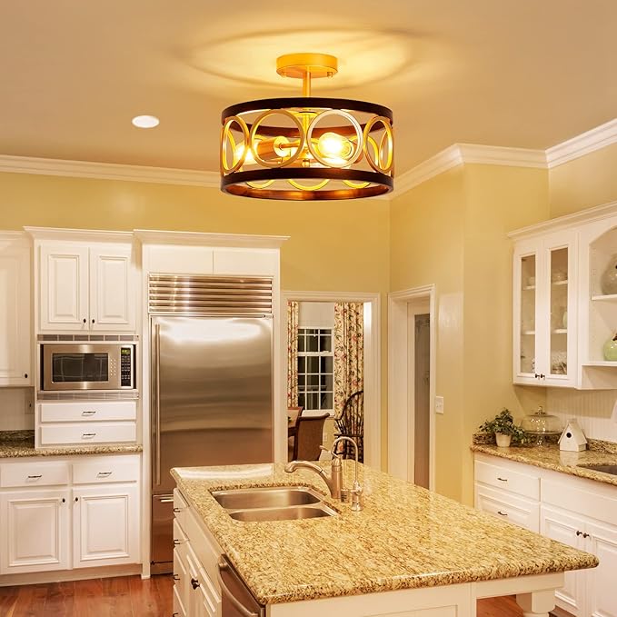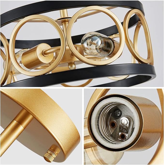- Industrial Chic: Add a touch of industrial elegance to your home with this stunning semi-flush mount ceiling light. The unique open drum design boasts a matte black and brushed gold finish that's both stylish and durable, crafted from high-quality metal. It's the perfect choice for modern, industrial, or farmhouse-inspired decor styles and is ideal for use in your kitchen, dining room, or any other space.