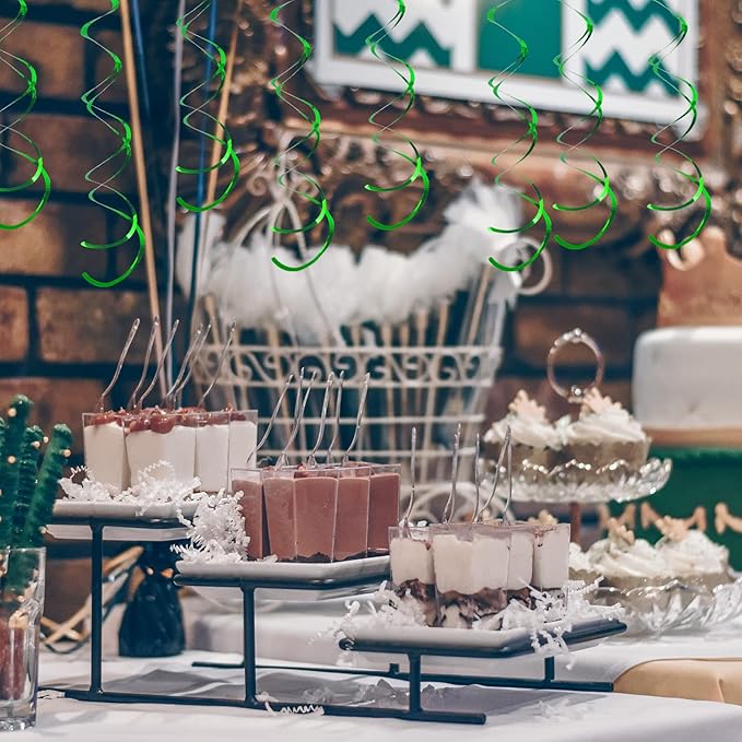 30 Pieces Green Party Hanging Swirls, Plastic Streamer Ceiling Decorations Wedding Baby Shower Birthday Party Decorations