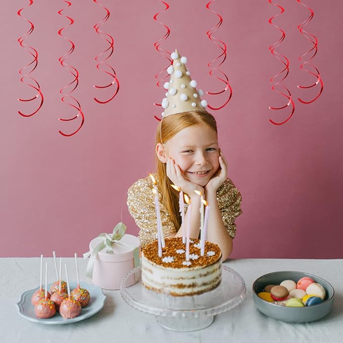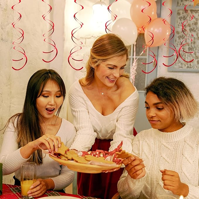 30 Pieces Red Party Swirls Decorations, Foil Ceiling Hanging Swirls Whirls Decoration for Wedding Baby Shower Anniversary Graduation Party Supplies