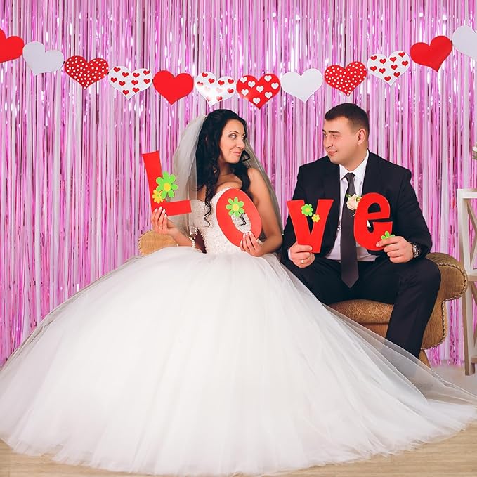 - Value Pack of 2: Includes 2 packs pink foil fringe curtains, enough to decorate your party backdrop and save your money. Each curtain is 3.2ft x 8ft. You can use 2 packs of the curtains side by side to make the backdrop larger, or overlap 2 pack of curtains to achieve a fuller and better look.