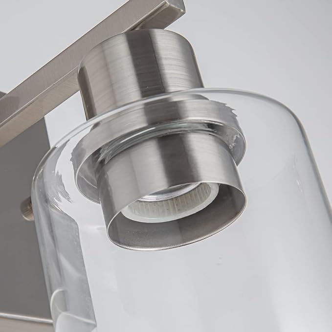 - Modern and Unique Design: The vanity lighting fixtures are made of sturdy metal in brushed nickel finish and can get through years of usage without getting oxidation and color fading. Matching with high-quality clear glass shades, Our bathroom vanity light will illuminate an all-around light beam in your room. It is also the perfect choice for your home lighting